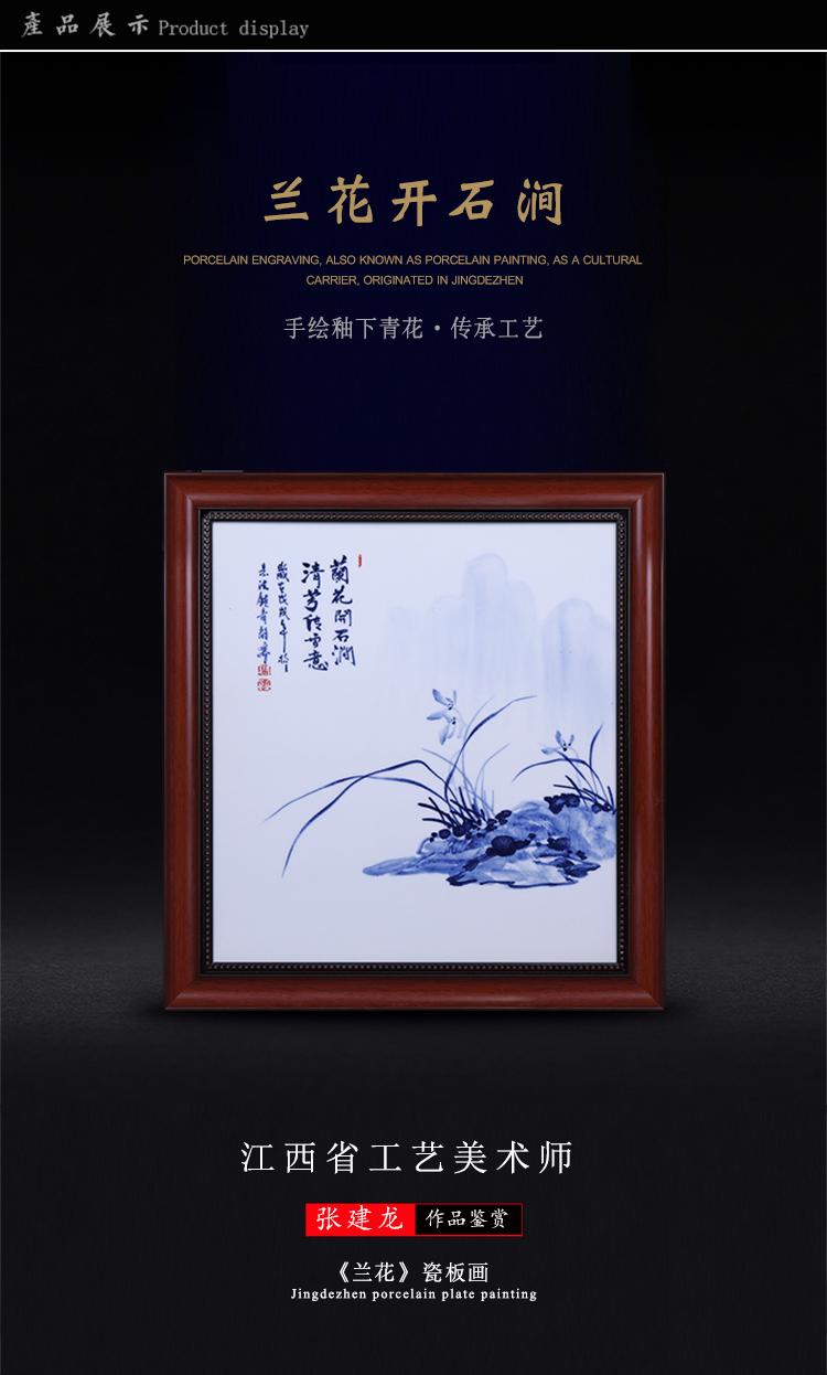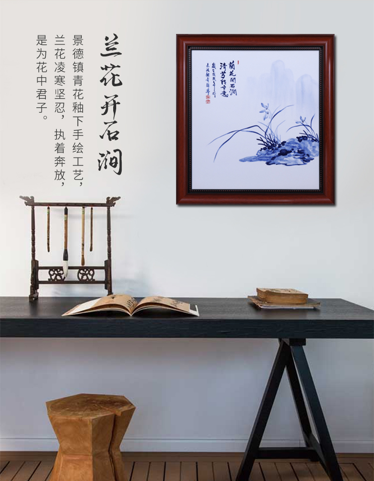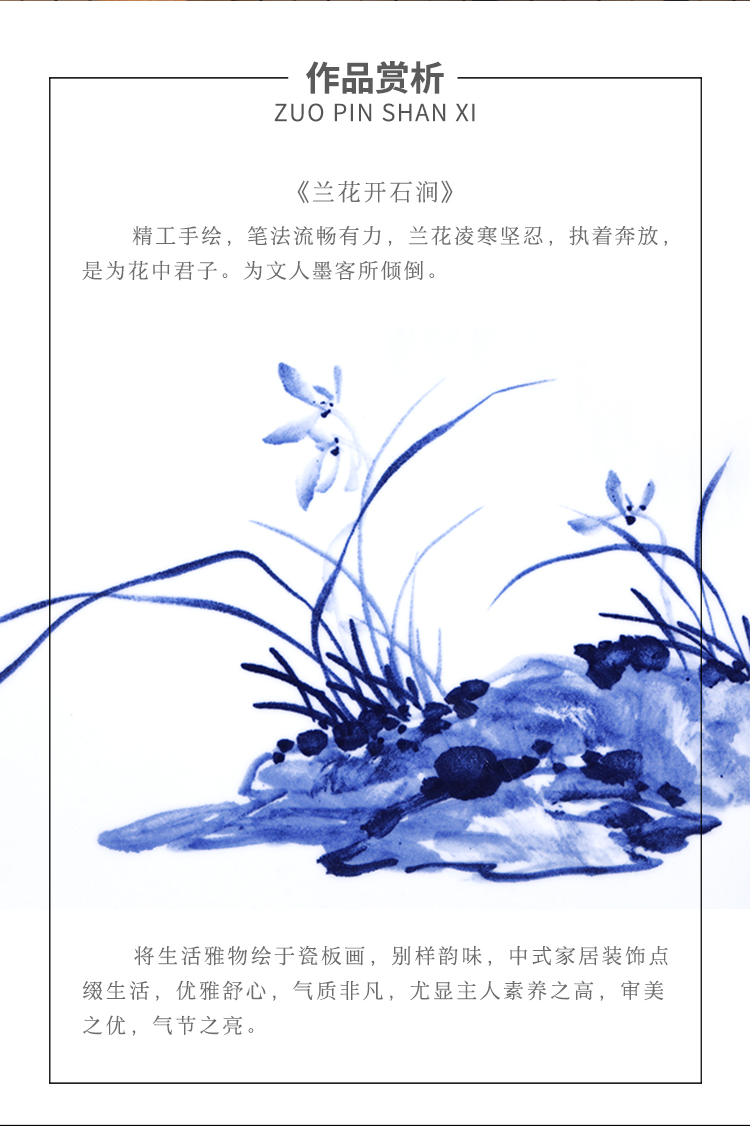陶瓷瓷板畫禮品 蘭花青花瓷瓷板畫