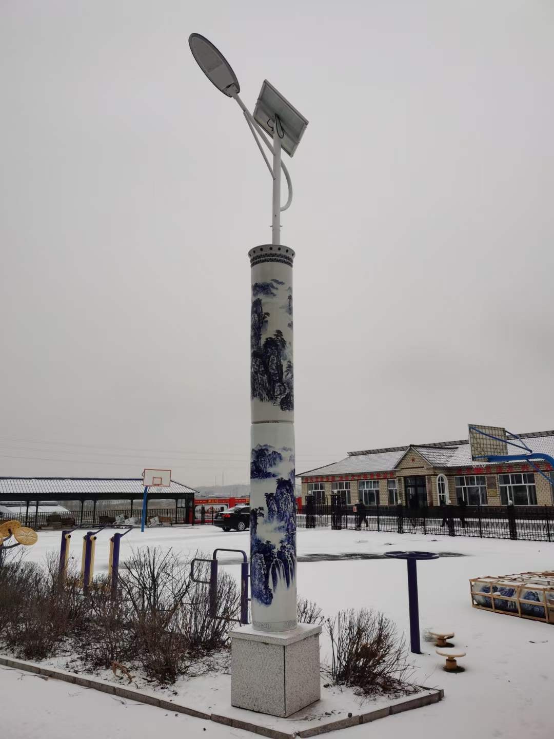陶瓷燈柱的配置,如下:高1.9米,直徑0.45米,每根兩節(jié),一套兩根,陶瓷燈柱畫面主要以山水畫為主,每一節(jié)下面打一個(gè)洞,寫景德鎮(zhèn)制,由于顧客不知道怎么安裝,所以派了專業(yè)人員去指導(dǎo)安裝,本次的運(yùn)費(fèi)也我們這邊出的。來(lái)看看產(chǎn)品: