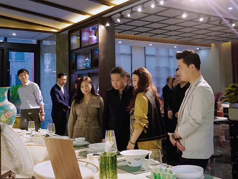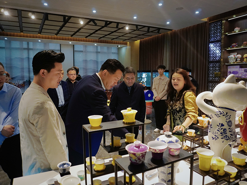 調(diào)研期間,丁曉勝一行專程來(lái)到名坊園辰天陶瓷,實(shí)地察看企業(yè)展廳、文創(chuàng)產(chǎn)品與工藝創(chuàng)新成果,認(rèn)真聽(tīng)取企業(yè)在陶瓷文化傳承、潮玩 IP 開(kāi)發(fā)、非遺工藝創(chuàng)新等方面的情況介紹。丁曉勝對(duì)辰天陶瓷以創(chuàng)新激活傳統(tǒng)、以潮流賦能瓷藝的發(fā)展路徑給予充分認(rèn)可,并就媒體與陶瓷企業(yè)開(kāi)展深度合作、品牌共建、內(nèi)容共創(chuàng)等方向深入交換意見(jiàn)。